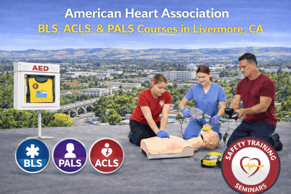 Safety Training Seminars proudly offers the American Heart Association (AHA) Basic Life Support (BLS) Certification Course in Livermore, CA, designed for healthcare professionals and public safety personnel who need reliable, skills-based training that meets employer and clinical requirements. Livermore is located in Livermore – Alameda County and sits in the heart of the Tri-Valley, making it a convenient training choice for professionals who live or work in Livermore and nearby cities such as Pleasanton, Dublin, San Ramon, Danville, Tracy, and Brentwood.